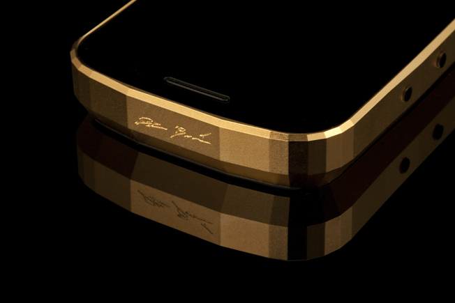 The Grand Touch body is precision CNC machined from solid aircraft aluminum and anodized to produce an elegant hard surface for demanding everyday use. The Grand Touch GCB is CNC machined from solid brass and is plated with gold. The surfaces of the bodies are created with straight lines instead of curves, a process that can only be done with the precision of CNC machining. A new design language of accuracy and exactness is born. The top of the body is CNC engraved with the signature of the designer, Peter Bonac, to commemorate this new design achievement. The frame is then inlayed with optional black painted sapphire crystal placed in every corner facet. In harmony with the unique look of the body, the entire back of the phone is comprised of 2 pieces of sapphire crystal connecting at a sharp angle. The battery cover is made entirely from one piece of sapphire crystal with a unique hidden sliding mechanism. The screws are gun metal black stainless steel and the buttons are black painted sapphire crystal. The Grand Touch is available in six designer styles: black, black satin, blue, grey, red and silver. The Grand Touch GCB is available in two designer styles: yellow and rose gold.