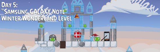 Following the theme of advent, 25 new stages of bird-blasting and pig-popping are playable for those who sign in with their Gmail or Google+ details and enjoy the Crimbo edition of Angry Birds on a full-screen desktop in a spectacular seasonal style. One new door/stage opens up every day (..you know how it works) with previous days in the advent are playable, but with each new day comes a new opportunity to win a Samsung Galaxy Note – which will be awarded to the top scoring 50 players.