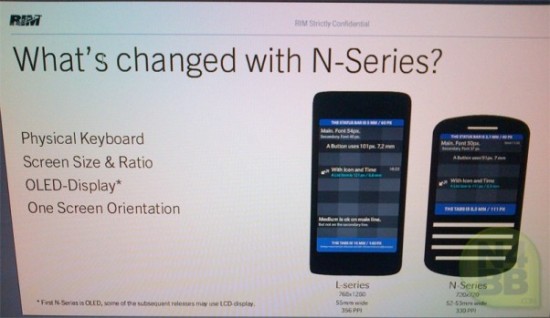 The word comes from those BlackBerry fanatics over at N4BB, who’ve managed to obtain a sneaky picture of a promotional poster explaining the two types of phone. The N-Series models are much like the Alpha Developer phone we saw a while back, and will feature an impressive screen for the first model.