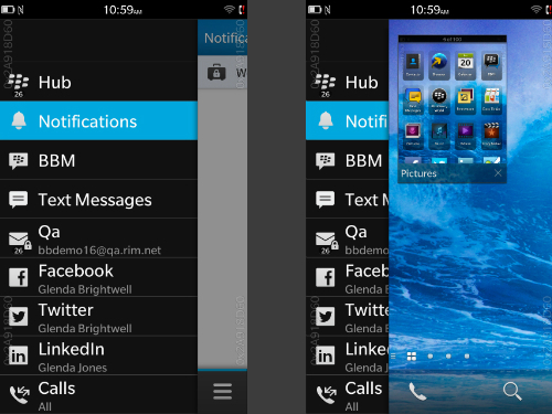 BB10 brings all your notifications into one sliding menu, known as BlackBerry Peek. This feature informs the user where each notification has come from and what it relates to, so updates can be checked without leaving an app that’s currently open.