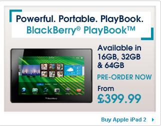 Interestingly, clicking on the banner for the Playbook on The Carphone Warehouse’s website takes you straight to the iPad 2 info page. We’re sure this will get fixed, but for the time being it’s fairly amusing to think eager Blackberry fans will be directed to look at rival Apple’s product.