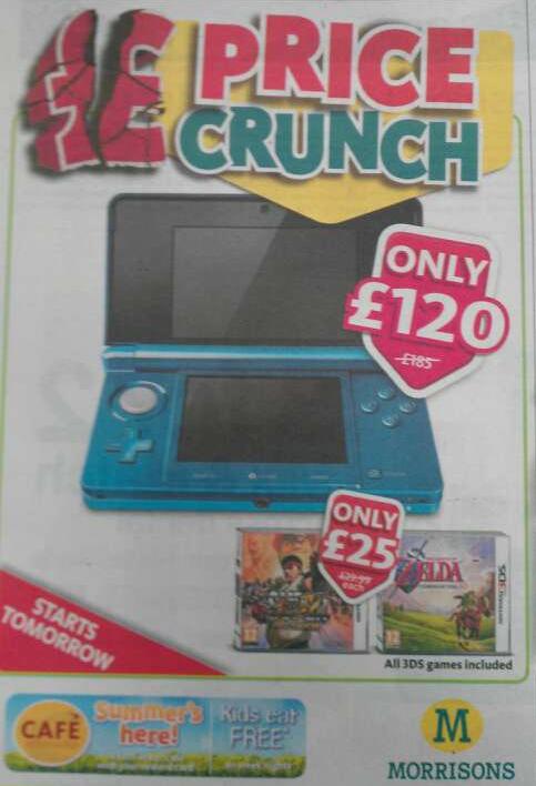 Price Crash! UK supermarket Morrisons are going to be offering the Nintendo 3DS at a ridiculously cheap price of £120 starting tomorrow, giving you a… Read More »Morrisons Offering Nintendo 3DS for £120 Starting Tomorrow!