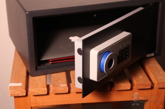 On the door there’s a simple numerical keypad which allows you set a code to allow only you entry, at least that’s the idea. Setup is a cinch – firstly pop four AA batteries into the compartment located on the inside of the door. To set your code you’ll need to open the door, key in “1 5 9 #” and then hit the red switch on the inside of the door hinge area. Then enter a code that’s a minimum of 3 and maximum of 8 digits, followed by the hash key to confirm.