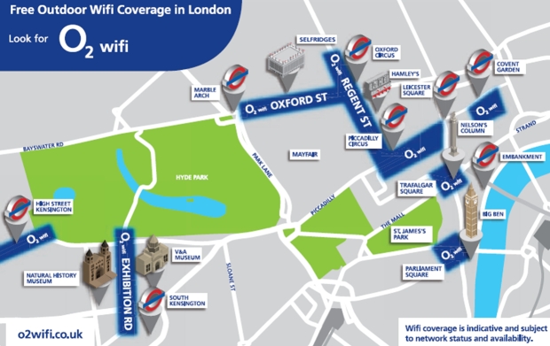 O2 has launched free O2 Wi-Fi across some of the most popular areas of Central London, from High Street Kensington to Parliament Square in Westminster, in line with the start of this week’s London 2012 Olympics.