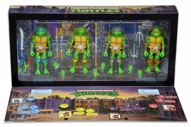 Attendees at this year’s San Diego Comic-Con, which starts on July 21st, will get first chance to own two sets of four action figures based on the Turtles themselves – as they appeared in the game, and also the Shredder and his foot soldiers. Each of the figures comes loving sculpted by the maker NECA and feature multiple points of articulation, along with signature weapons.