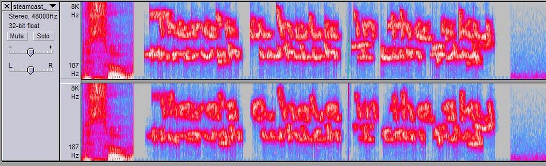 As well as an ominous doomsday timer and message located in the aperturescience.com domain name registered by valve found here, Steam users have transmogrified the latest garbled Steamcast using Audacity and found themselves this secret waveform-based message…