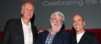 The Saga scribe was appearing at CinemaCon in Las Vegas along with a panel of greats including “Avatar” and “Aliens” motion-picture master, James Cameron and Jeffrey Katzenberg, Chief Exec of Dreamworks and a pioneer of 3D animated features such as “Shrek”. The Big Three were all in agreement that the three-dimensional format will soon completely take over all movies and will be the future for our home TV sets.