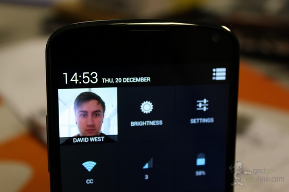 Android 4.2 includes a neat two-way notification bar, which includes a tile for your user profile. Usually this is just a blank section, but you can put your face there to make it look pretty cool and stamp your ownership on your Nexus.
