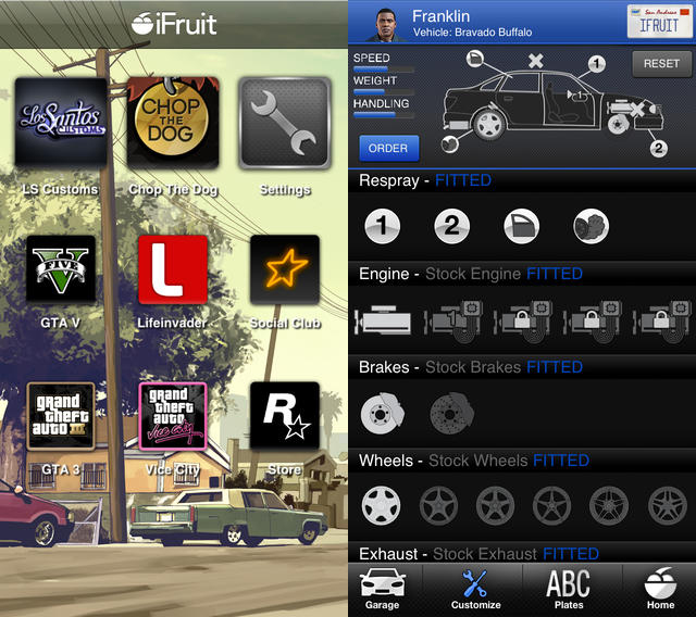 What you do on the app can have an affect on some of what can be achieved in the game, as within the iFruit are other apps such as Los Santos Customs which lets players customise their vehicles on iPhone and iPad with personalised license plates and paint jobs, with other mechanical upgrades also on offer.