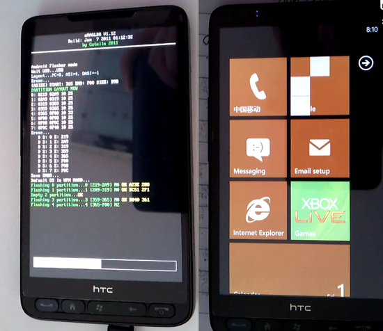 So we move swiftly on after some long months of development, and we get the news that Cottula has a Christmas present coming a little early for the HD2 owners who like to keep one eye firmly on the HD2 pages on XDA – a new version of MAGLDR is released that has a new option on it. Users could now boot WP7 from NAND. This gave two possibilities; you could choose to boot either Windows Mobile 6.5 or the new Windows Phone 7 on your HD2.