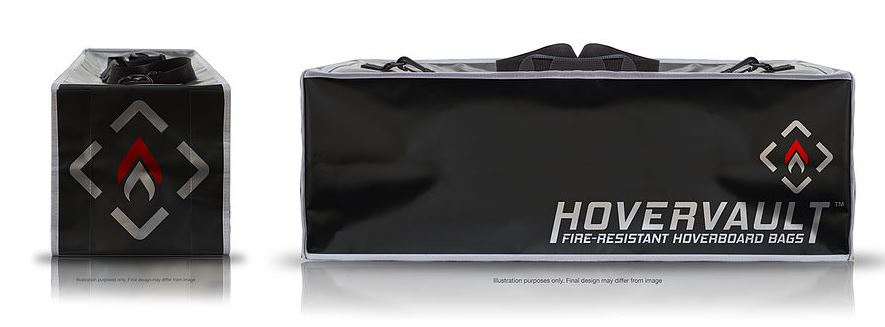 Hovervault is a fire-resistant bag that contains any heat from within, especially from the faulty battery of a smouldering Segway. The bag is designed to carry the Hoverboard and also protect your possessions should it go bang while charging which has been reported in a number of concerning situations in the UK, USA and Australia among others which have caused damage to homes as well as personal injury.