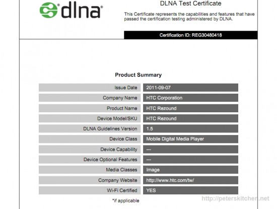 Certified as “REG30480418”, the HTC Rezound made it way on to the web, in a fashion, in a document mentioning some of the basic details of the device, and certifying it as meeting the standards of the Digital Living Network Alliance as established as a guideline for consumer gadgets and media sharing. The DLNA was brought into existence by Sony back in 2003. It has since certified an estimated 9000 devices receiving a ‘DLNA Certified’ logo and has 250 tech companies registered.
