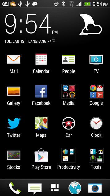The weather application looks to be backed up by AccuWeather again, as has become HTC tradition, although it looks to have also been given an overhaul in the looks department. The home screen features the option to add folders as before, with a sleek new look to the folder icons to compliment the new system app icons.