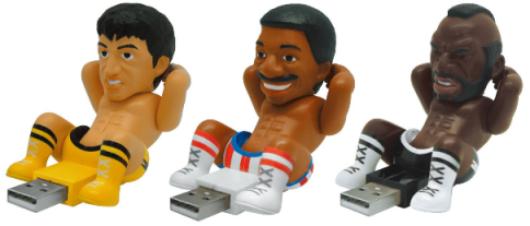 Featuring characters from the 1982 classic boxing movie – who do nothing more than exercise repeatedly on your desktop. That’s right. These aren’t even functioning storage devices. Just like their on-screen counterparts these mini contenders enjoy nothing more than a good workout!