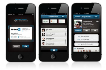 The app named CardMunch is extremely handy to have on your iPhone as it will allow you to take photographs of a business card you have been given, then magically convert it into digital text and then add it to your address book, as well as adding the contact as a connection on the LinkedIn site.