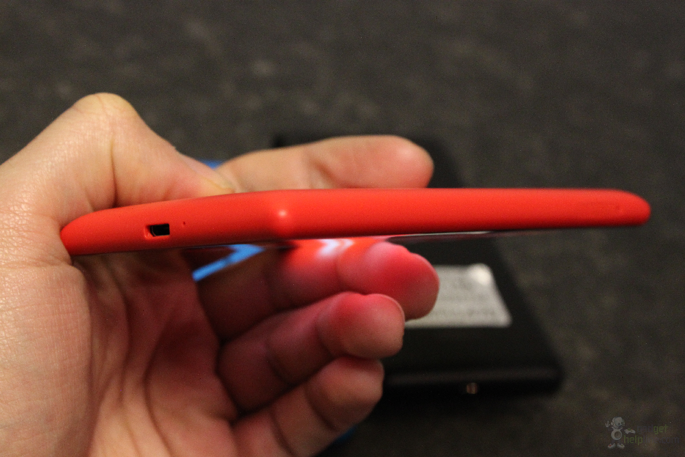 The design reminds us of the Windows Phone 8X by HTC, with its squared corners and back tapering down to thinner edges all round, although the sides are slightly thicker and more curved, which makes the phone easier and more comfortable to hold than HTC’s effort.