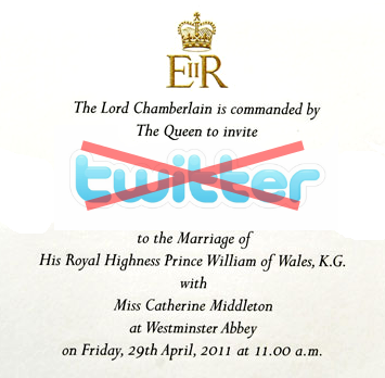 Disappointed Twitterphiles will to no longer be privy to the insider gossip from their fave personalities as event organisers have arranged for signal blockers to be installed in the Abbey during the nuptials between Wills and Kate.
