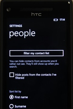 Once you’ve added the Facebook account it seems pretty tricky to remove it, or to just remove the contacts. Thankfully there’s a simply way of blocking out your Facebook contacts in the People Hub, leaving only your phone, SIM or email contacts.