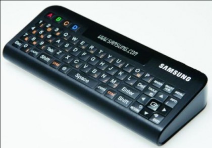 Possibly the coolest of the announcements in the Home Entertainment section is that of the new QWERTY Flip remote for Samsungs Smart TVs. It’s a Dual-Sided remote which features a full QWERTY keyboard complete with LCD screen on one side, and the regular TV remote on the other. Considering it’s two devices in one, Samsung have managed to make it very slim and sleek indeed. The QWERTY Flip remote will come in the box with the Samsung D7000 and D8000 series of Smart TVs.
