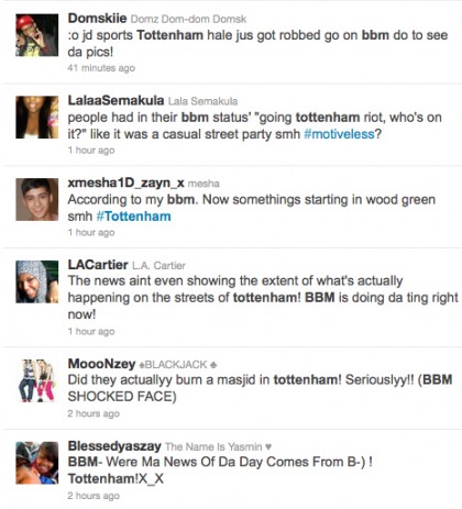 While Twitter has been used by many to find out what is going on, it would seem that another much less likely social networking tool has been used by the rioters themselves to coordinate violence, looting and mugging. Blackberry Messenger is thought to have been used by a large proportion of the rioters to post statuses about the rioting – telling others where rioting is happening and even planning attacks. By searching ‘BBM riots’ or similar on Twitter, you are presented with a host of people talking of how the Blackberry-exclusive IM app is being used by young rioters.