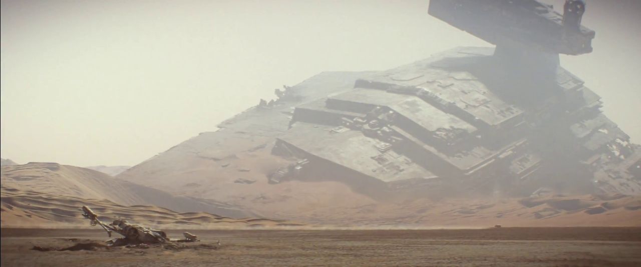 The nostalgia is flowing through us from the get go as Trailer #2 starts with a slow pan to reveal a fallen Imperial Star Destroyer impaled into sand dunes. Let’s not forget that this massive juggernaut was one of the very first things we saw in a Star Wars movie and this makes the scene here most symbolic as we prepare to embark on a brand new adventure which will focus on new characters and story.