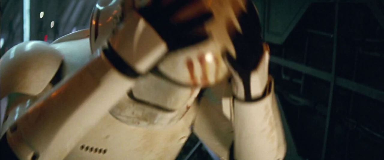 What’s the story with Finn? He seems to be playing for both teams – wearing trooper gear in some scenes while in others he’s rolling with the good guys. There’s a point in the trailer where he removes his helmet which notable has a bloody handprint on it. Has Finn done something terrible for the Empire that he’s seeking redemption for by joining up with Rey?