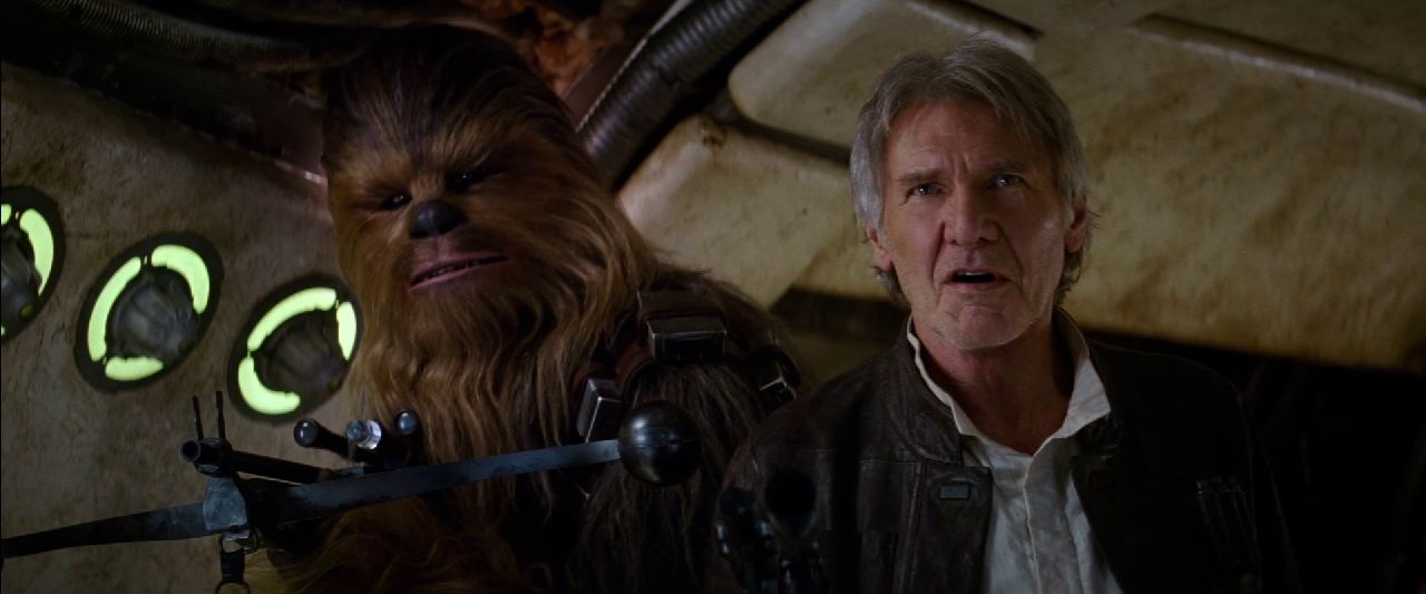 More explosions, more ships and more shots of the young characters lead us to a chase through a crashed vessel between TIE Fighters and the Millennium Falcon. And then, the money shot – Han Solo and Chewbacca, reunited on the ship that made the Kessel Run in less than 12 parsecs, as the smuggler declares – “Chewie. We’re home”.