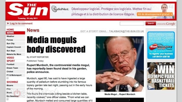Online hacker collective LulzSec attacked The Sun newspaper’s website on July 19th and redirected users to their own site which was designed to look exactly like the real deal. LulzSec then used this phony website to post a new story detailing media mogul and News Corp owner Rupert Murdoch’s death.