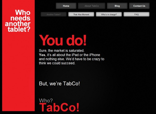 A mysterious company going by the name of TabCo has been doing all sorts of viral marketing over the past few weeks, and from what we can gather they have a completely new tablet device up their sleeves for us.