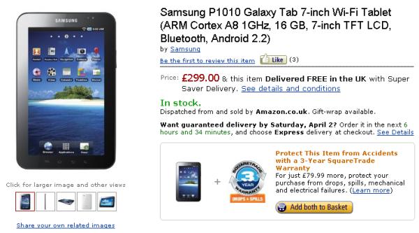 Samsung P1010 Galaxy Tab Wi-Fi priced at £299