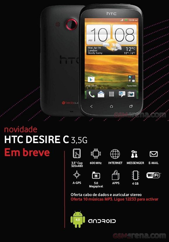 Finally, we get to see exactly what the rumoured HTC Desire C looks like, thanks to some leaked press shots along with spec info courtesy of Vodafone Portugal.