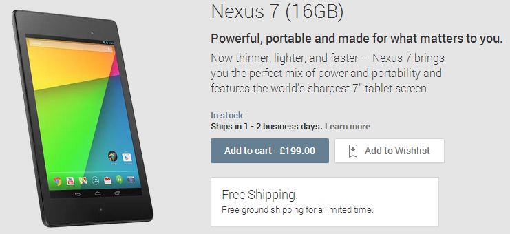 The new Nexus 7 will come with a pair of storage options, one a 16GB model costing $229.99 and the other a double-sized 32GB weighing in at $269.99.