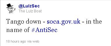 After denying being involved with the Sega hack and user data leaks earlier this week, LulzSec were quick this time to boast that they were the perpetrators of the SOCA website hack. The group posted to their Twitter account yesterday “Tango down – soca.gov – in the name of #AntiSec “.