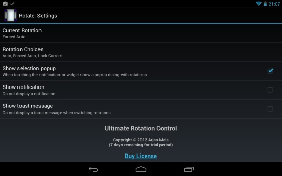 This app is very useful, as it allows you to use the stock Nexus 7 launcher in landscape mode. It also works with other apps, allowing you to really make the Nexus 7 act as you’d expect, with rotations in all four directions supported. It’s perfect for when you’re charging your Nexus 7 but you want to prop it up too – with URC installed, you just use the reverse portrait orientation and have the USB cable coming out of the top instead of the bottom. The app is free for 7 days, but costs after that.