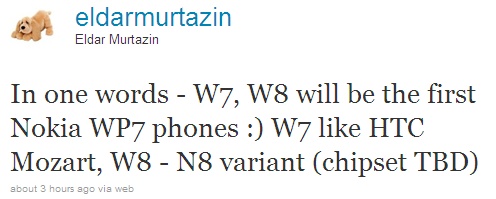 Nokia-hating tweet-freak Eldar Murtazin (eldarmurtazin) has whipped the rumour mill into frenzy by claiming Nokia are lining up the first range of Windows Phone 7 mobile phones, and even suggesting he’s had hands-on time with one of the prototypes.