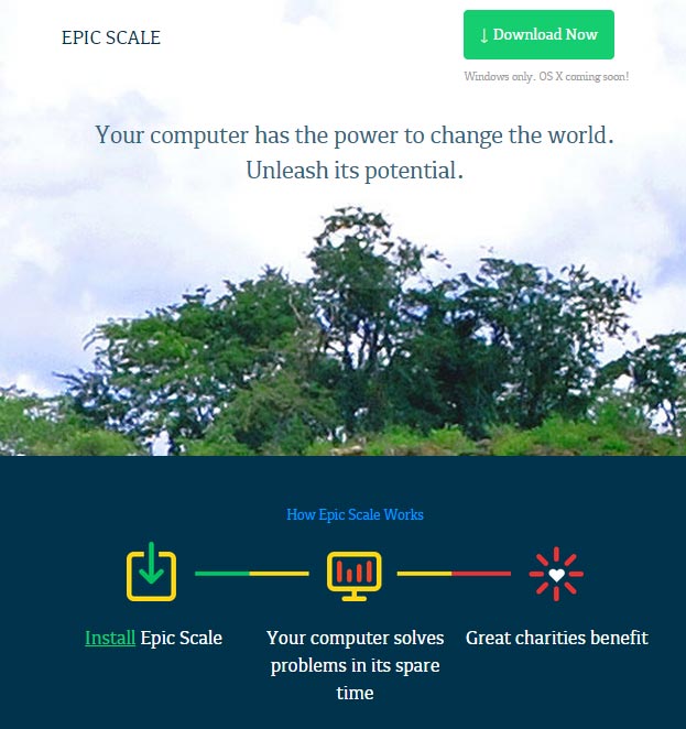 Epic Scale isn;t all bad – the software uses computing power to raise money for good causes… but sneaking the software onto people’s computers isn’t the best idea.