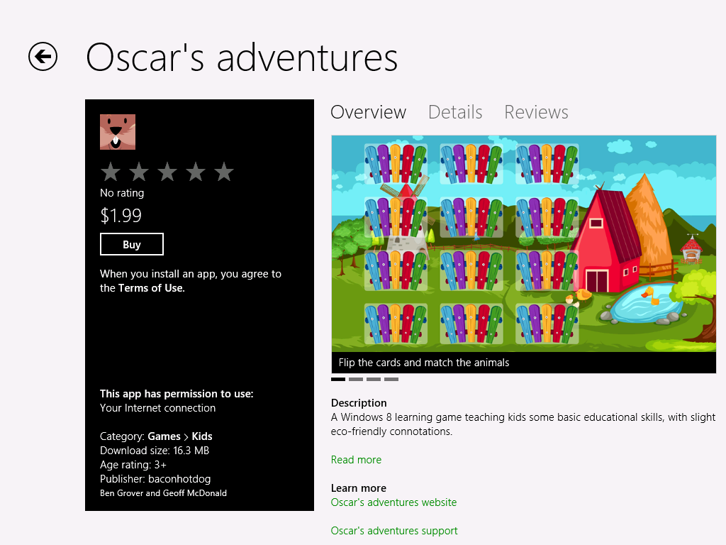Viewing apps is much like in Windows Phone, with tabs for pictures, reviews and details, and a buy option to the left. Apps can be rated out of 5 stars which will become useful over time for finding the best apps, and the pricing seems to be along the lines of $1.99/£1.49.