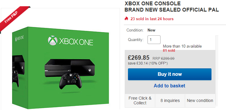 Even at this price the console is a steal and offers a £30 saving off the £299 RRP. However, add the eBay discount code CTWENTY – redeemable when purchasing via PayPal, and allow your jaw to drop as a further £50 magically disappears from the total price. To sweeten the deal even more, the postage within the UK is free or buyers can arrange for the Xbox One to be collected from a local Argos store.