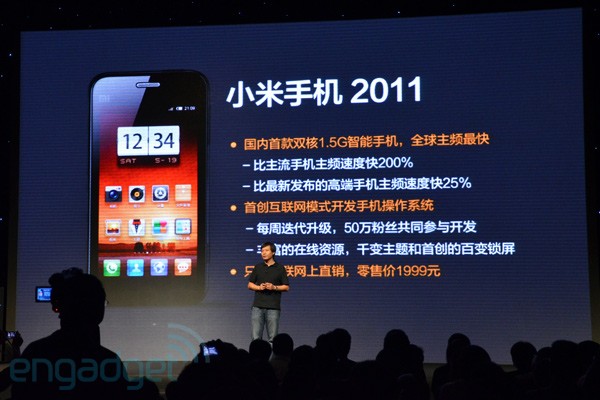 A Qualcomm 8260 Snapdragon chipset with a dual-core 1.5GHz CPU is lurking under the hood with Adreno 220 graphics and 1GB of RAM. The battery also packs plenty of juice, 1930mAh to be precise, enough to get you through 2 days of ‘real life use’ (real real life Xiaomi say).